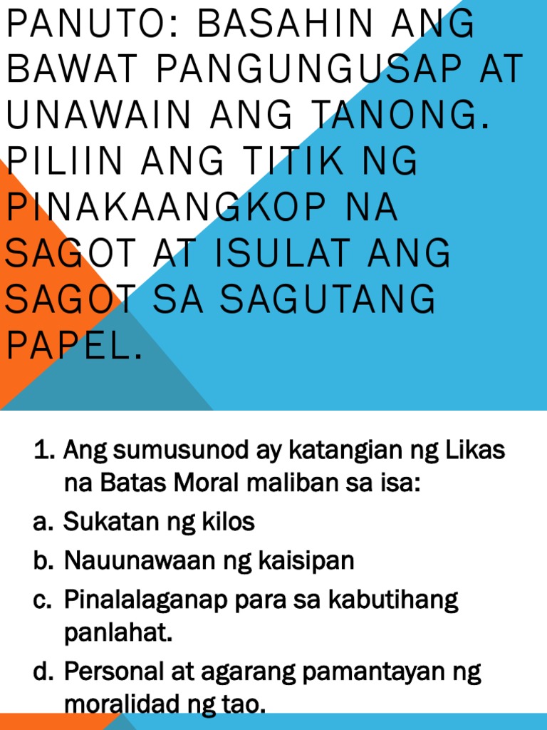 Tamang sagot sa tanong. Some of the worksheets for this concept are Araling panlipunan Filipino baitang 7 ikaapat na markahan Filipino baitang 9 ikaapat na markahan Employee recognition nomination form pdf Instructions for parents daniel l wohl md pa pdf 14102019 Pilosopiya ng Pagpapahalagang Moral Philosophy of Moral Values. Ibigay ang tamang sagot.
