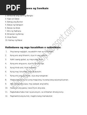 Mga Halimbawa Ng Sawikain Salawikain At Kasabihan